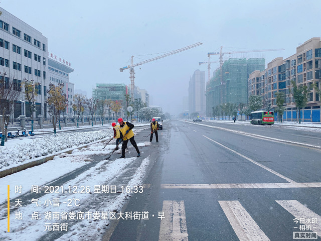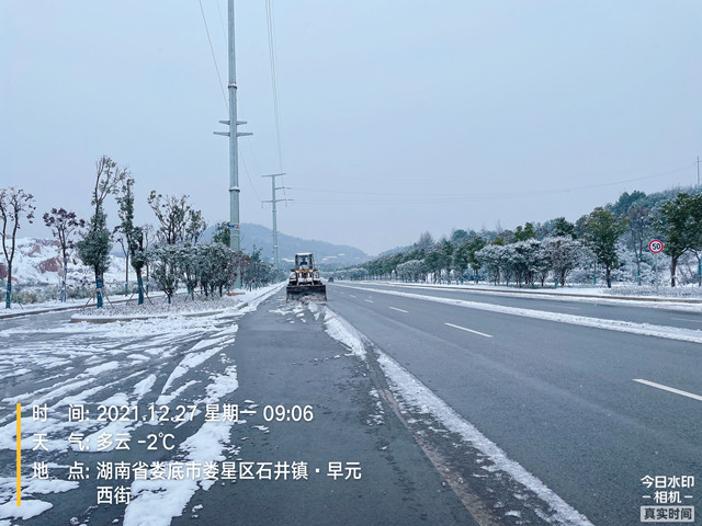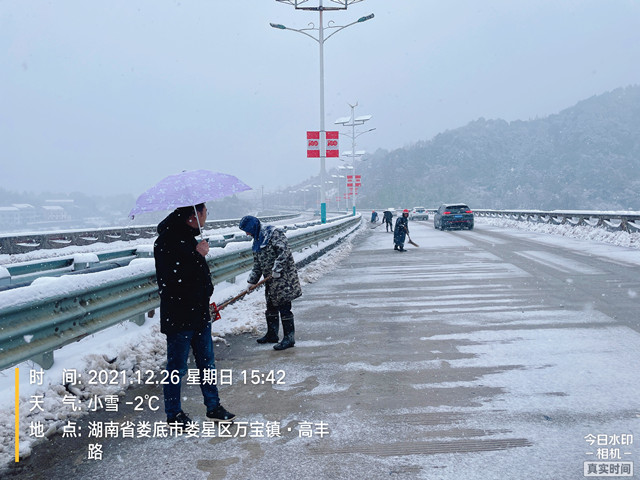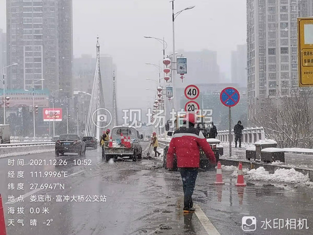 婁雙公路通行正常,未出交通事故,市政維護處正在鏟雪,準(zhǔn)備撒鹽,確保橋面不結(jié)冰