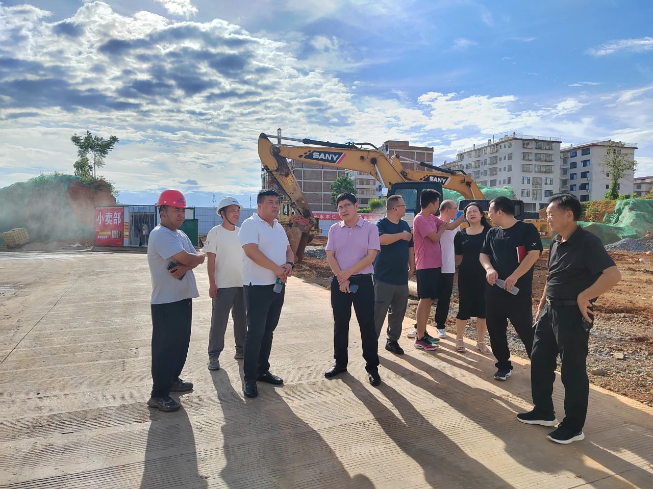 在兩個安置基地現(xiàn)場,徐業(yè)波仔細察看了工程建設進展、安全文明施工管理、工程質量把控等情況,詳細詢問了近期施工計劃安排和存在的難點堵點問題,現(xiàn)場進行了安排部署。
