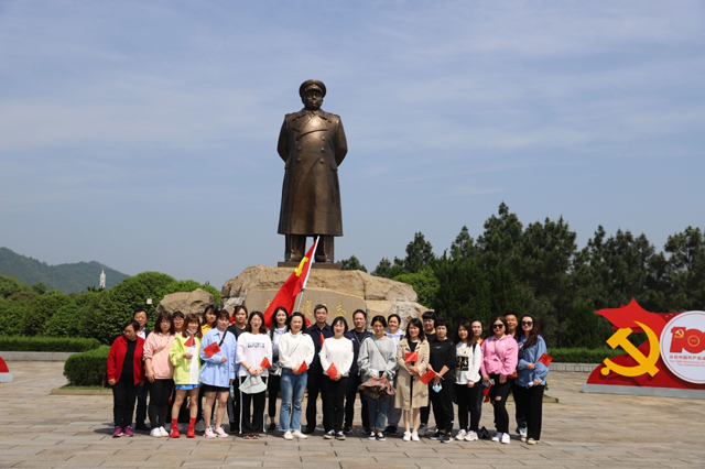 八點鐘不到,所有人員 在萬寶新區(qū)集合統(tǒng)一乘坐大巴車出發(fā)。一路上,大家爭先恐后唱著紅歌,歌聲飛揚(yáng),氣氛熱烈,車上洋溢著濃濃的紅色情懷。約摸100分鐘后,汽車順利抵達(dá)彭德懷紀(jì)念館。一下車,廣場上巍然屹立的彭德懷元帥的塑像吸引了大家的目光。大家紛紛來到塑像前,自覺地排好隊,將鮮艷的黨旗高高舉起,相機(jī)定格了莊嚴(yán)的一刻。隨后,大家跟隨講解員逐一參觀彭德懷紀(jì)念館的各個展室。從平江起義的槍聲到井岡山的烽火,從保衛(wèi)延安的勇毅,到抗美援朝的剛烈,敢于“橫刀立馬”的彭德懷元帥輝煌的一生使大家深受教育。 從紀(jì)念館出來,參觀了彭德懷故居。在故居門口,大家合唱了歌曲《沒有共產(chǎn)黨就沒有新中國》,昂揚(yáng)的節(jié)奏和旋律在故居上空高高飄揚(yáng),吸引了眾多參觀者的目光。