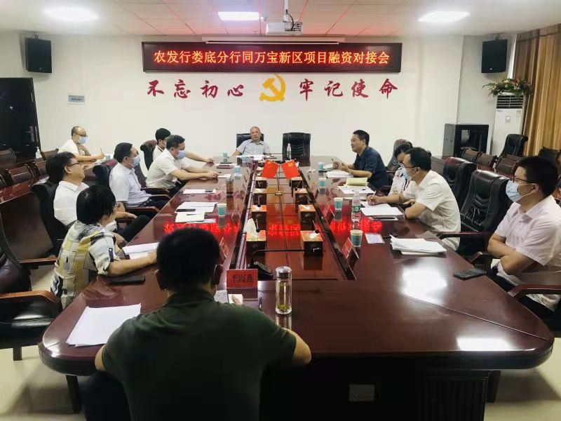 梁養(yǎng)賢首先就萬寶投資集團的融資情況作了簡要介紹,提請市農發(fā)行對萬寶新區(qū)高新技術產業(yè)園、安置小區(qū)、片區(qū)開發(fā)等項目提供融資支持。隨后,肖雄杰提出,要抓住政策機遇,推動新區(qū)鄉(xiāng)村振興項目建設,愿與農發(fā)行達成全面合作協(xié)議。